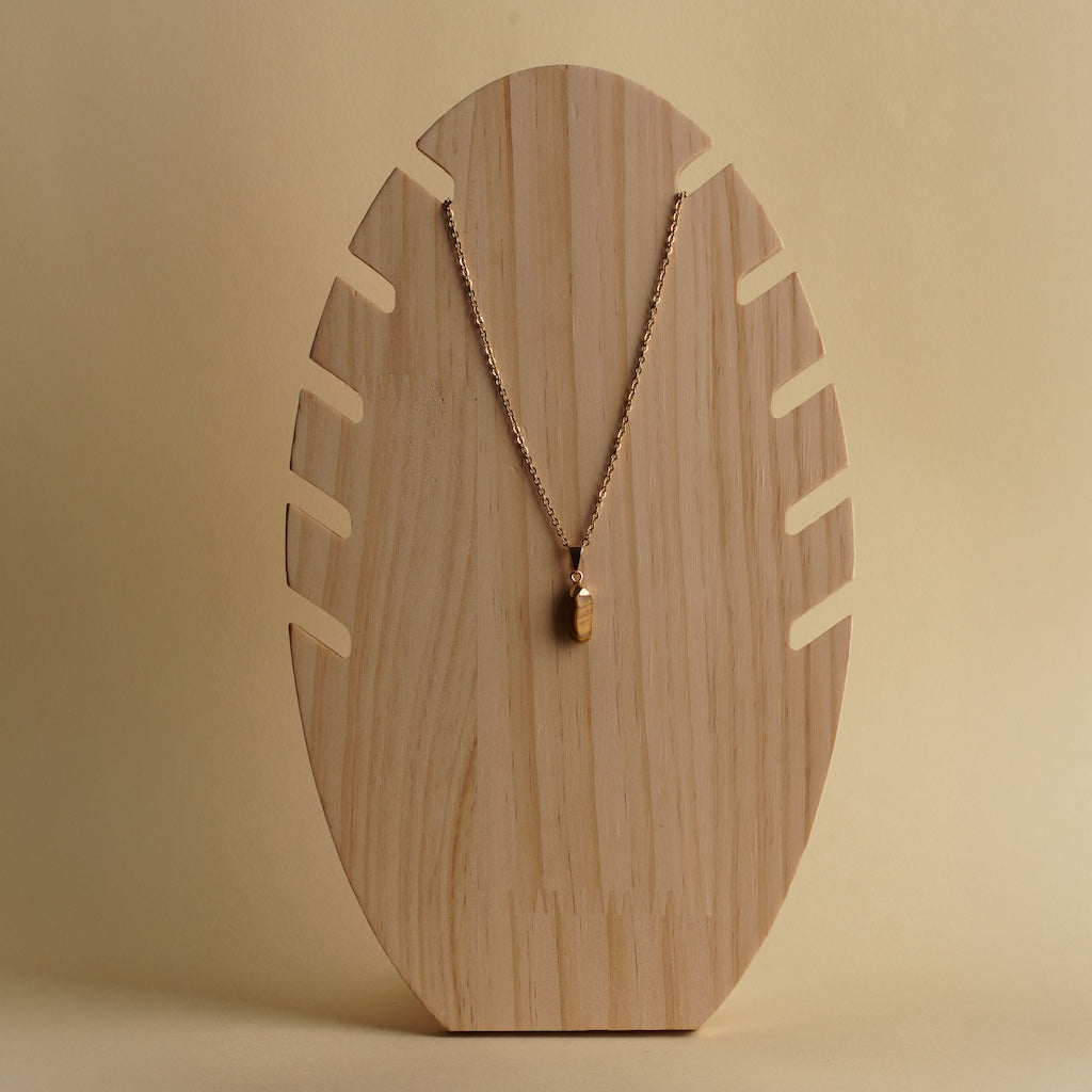 Bold and stabilizing, this golden necklace holds a smooth tiger’s eye drop, a stone of confidence, protection, and focused energy. Its warm, earthy tones paired with golden finishes make it a striking piece to support your strength and clarity every step of the way.